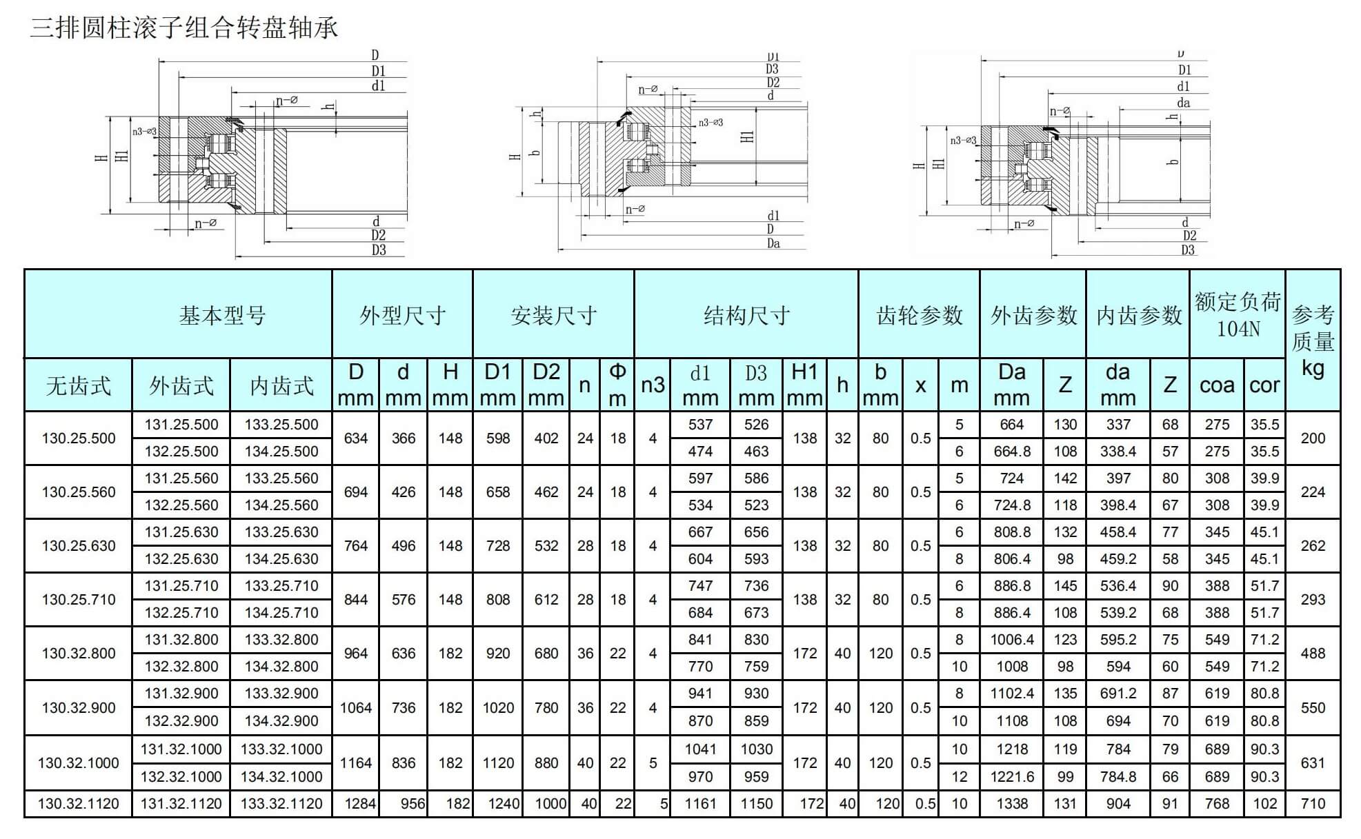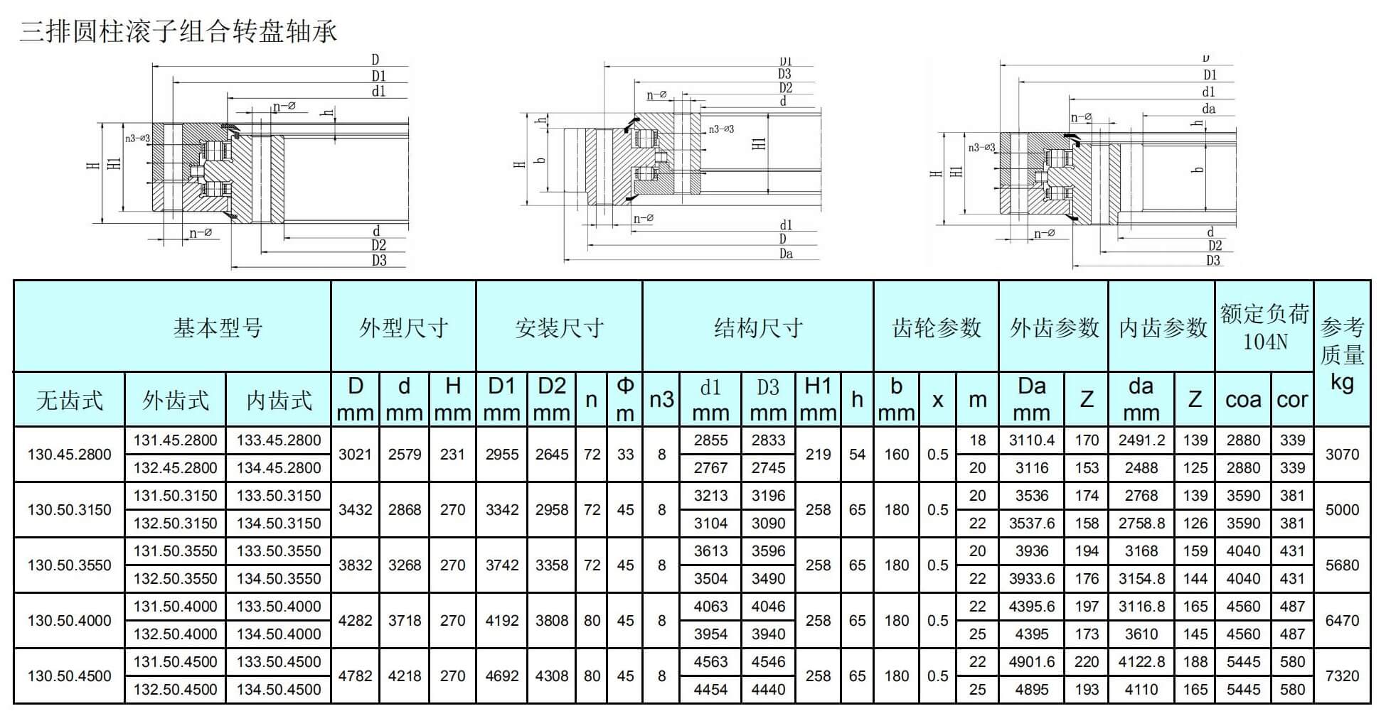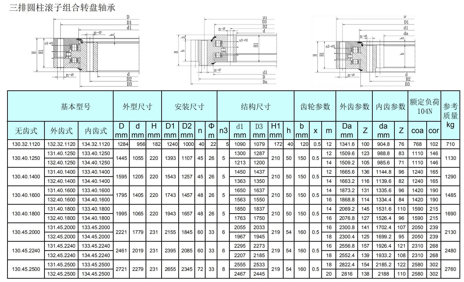 三排圓柱滾子組合轉(zhuǎn)盤軸承外齒式